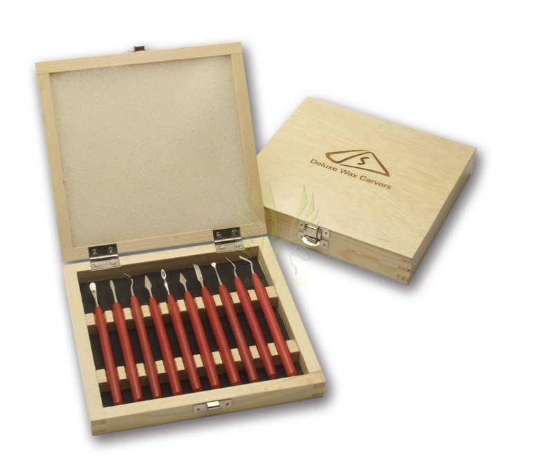 Quality wooden box holds 10 premium comfort grip wax carving tools to meet all your wax carving needs. The vinyl handles help reduce fatigue
