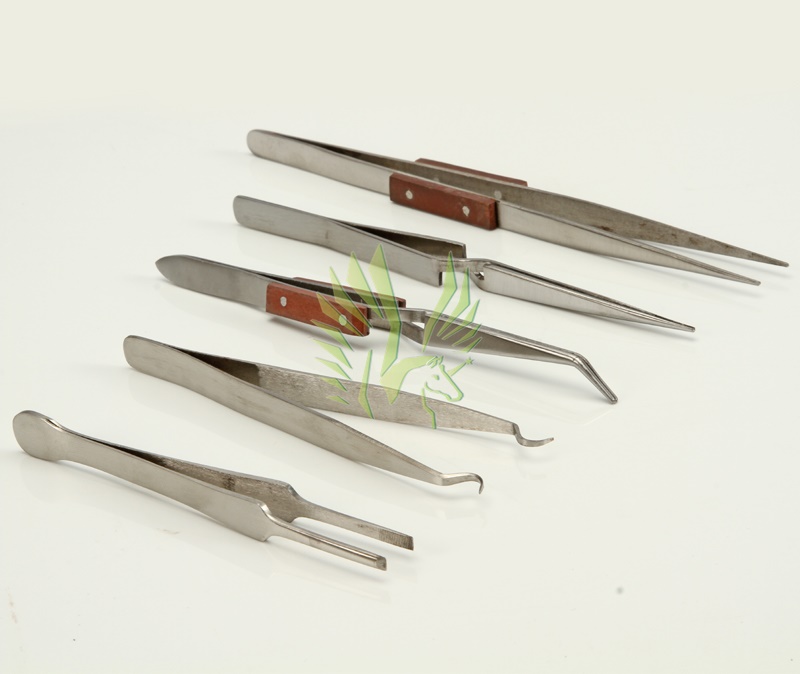 Set of 5utility tweezers in handy plastic pouch. Shafa reference numbers for easy identification: S-114, S-112, S-120, S-124, S-118