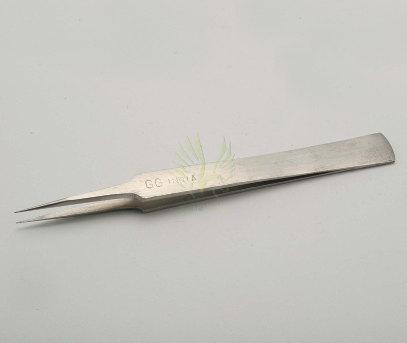 Pointed, indented shanks on these general utility tweezers. Length 5 1/8â€