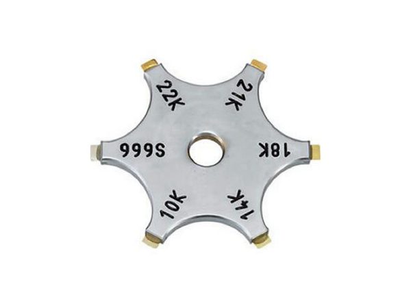 [chrome plating. 6 gold tips – 10, 14, 18, 21, 22 & .999.AII sizes are clearly marked on each arm for optimum visibility and quick reference]
