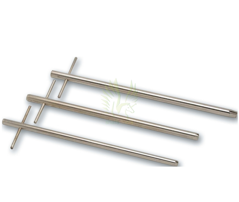 A great tool for the clockmaker to put clocks into beat. Features a ‘T’ handle that provides added convenience and dexterity to the user. Long enough to reach deep inside most movements. Set of 3 sizes