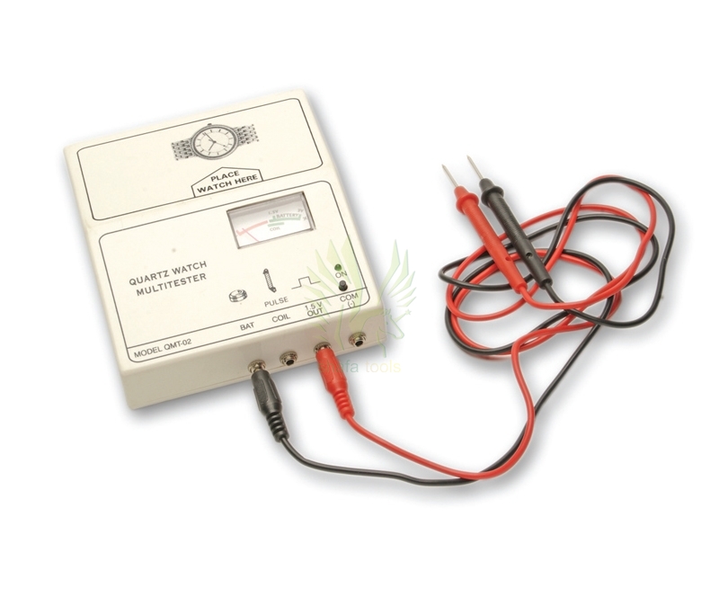 Handy, economically priced tester with analog meter can be used to test for coil resistance & insulation, and to check for battery condition, without taking the back of the watch! Test probes included. Powered by ‘AA’ batteries & constant 1.5v power supply. Measures 5†x 5 ¾â€