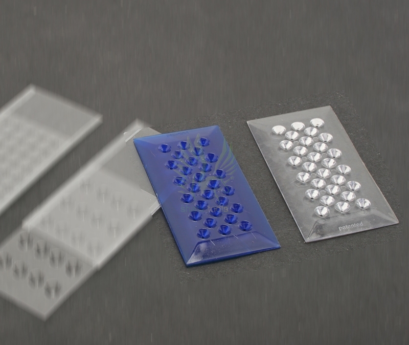 Handy, inexpensive, clear hard acrylic trays that prevent loose stones from jumping out when opening stone parcel papers. Can be supplied in color for quantity orders.