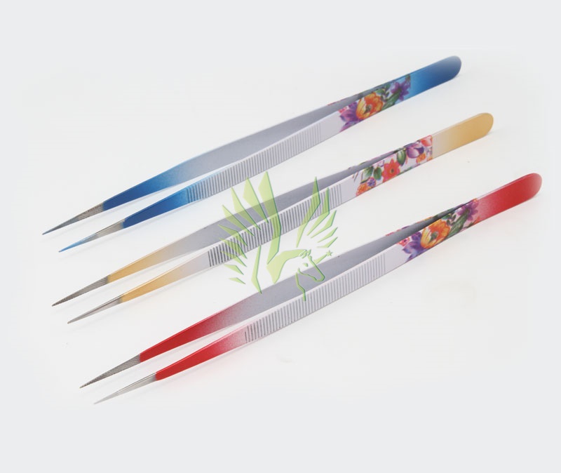 Economically priced diamond tweezers, painted in attractive floral patterns and colors. Fine point