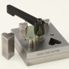 Premium quality, pattern disc cutting set with handle. Hardened, tempered, precision-ground hexagonal-shaped steel punches of sizes: 1/2″, 5/8″, 3/4″ & 1″. Top plate has punch sizes laser-marked on it. Turn the handle to open / close the plates to accommodate different metal sheet thicknesses. Handle rotates full 360. Designed for soft, non-ferrous metals up to 20 gauges thick.