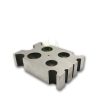 Flat, hardened steel block with 27 hemispherical depressions, in three rows. To be used with dapping punches for shaping metals. The other side is fully ground and can be used as a bench block. Measures approximately: 5-1/8 inch x 2-1/2 inch x 7/8 inch.