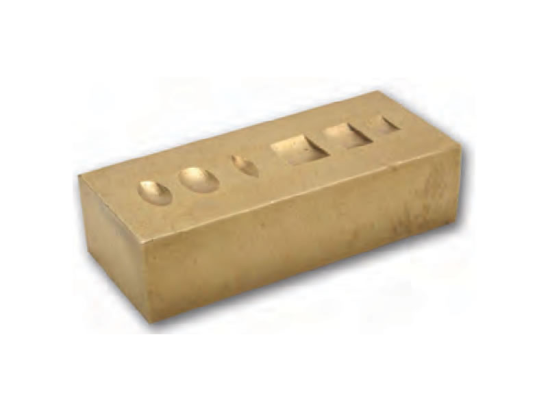 Brass anvil secures ring bands in the slots & prevents flat spotting during stamping. Various sized grooves are designed for different ring size shanks. One side is for ladies rings and the other for gents rings