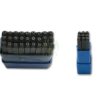 Made of hand-cut steel, to stamp on metal surfaces or mark the insides of rings. Curved design; square shanks. May be used on a stamping machine. Made to customers specifications.