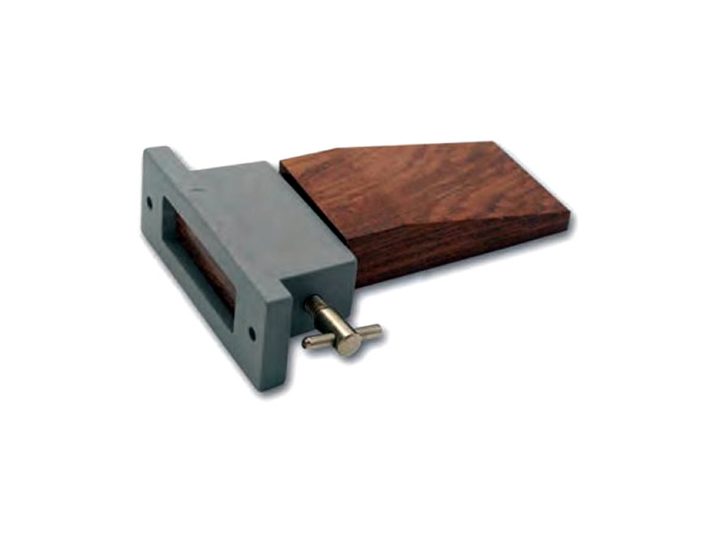 [The metal holder screws onto the edge of the work bench. Thumbscrew secures wooden bench pin in place. Measures approx. 5”]