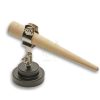 Hardwood bracelet holder holds bracelets when engraving & setting. Surface may be bonded with shellac to retain the item. The rotating wheel may be locked in desired position by a winged nut, offering the user a clear view of the setting.