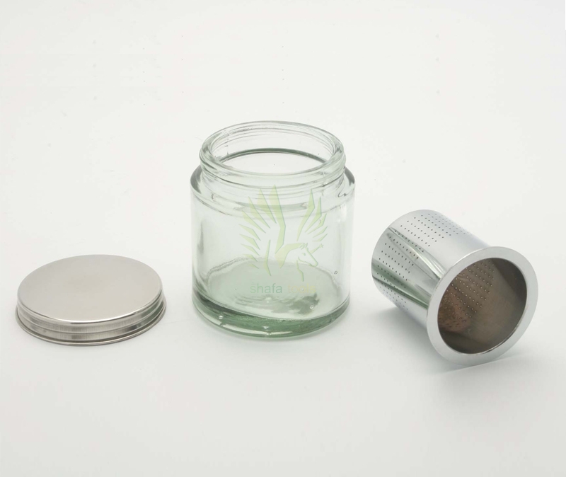 Glass jar with a metal cap and a stainless steel perforated cup. Ideal for cleaning diamonds and other loose stones in alcohol.