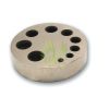 Flat, steel hexagonal clock and watch riveting stake. 1 ¾†diameter with 15 holes and 5 slots. Handy tool for riveting, drilling and staking small parts. Smooth surface for flattening items; square edge may be used for bending metals