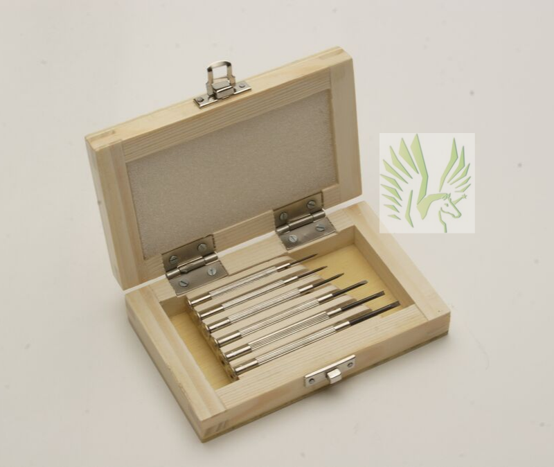 6 fixed-blade screw drivers packaged in a handy & attractive wooden box.