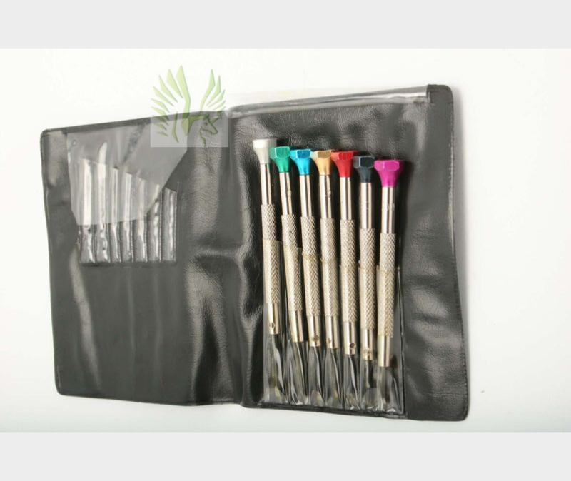 Pouch contains a series of 7 popular screw drivers with color-coded, hexagonal heads. Extra blades provided.
