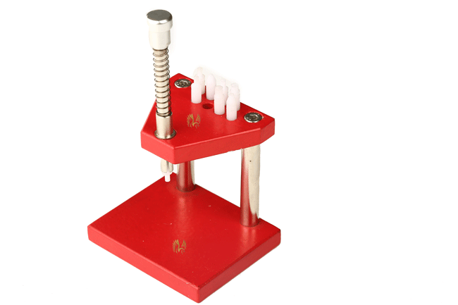 Used when adjusting collets, turning or removing screws from a balance. The balance is lifted out of the movement by its bridge and the bridge is slid onto the balance tack through the screw hole, allowing it to be manipulated without removing it from the bridge entirely