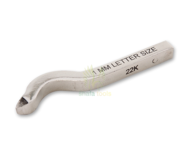 Premium karat punches with letters arranged in a radius at the tip. The curved shape of the punch fits the shape of the rings better leaving a smooth and even impression. EXCLUSIVE