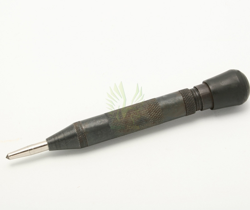 Hard-point, heavy-duty center punch for marking, staking & punching. One hand operation & no hammer required. The point is positioned on the required intersection and the tool is pressed down; this automatically releases a striking block which punches the point into the metal.
