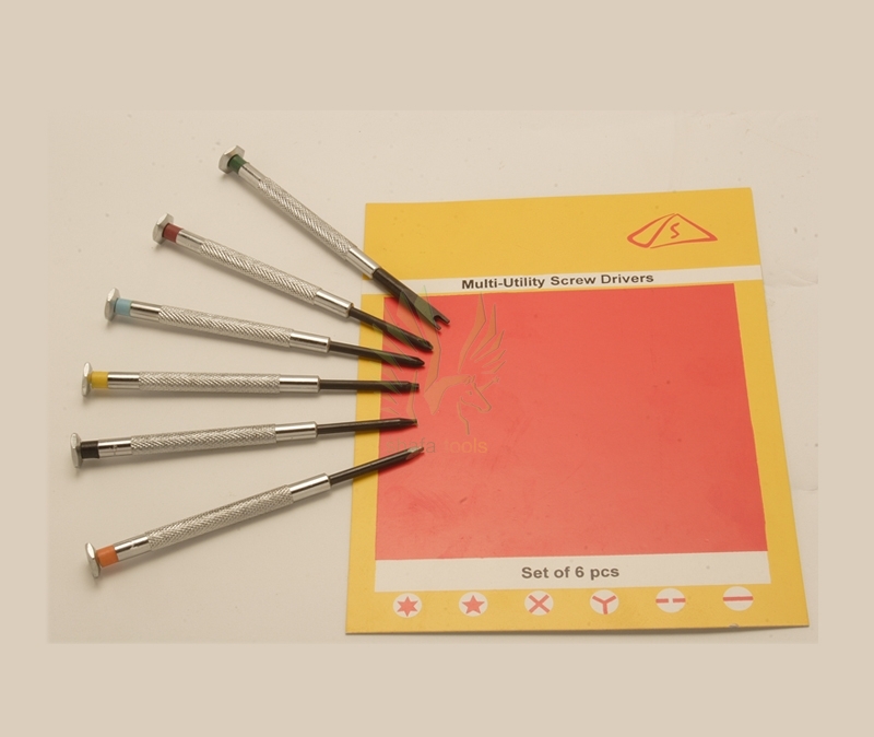 This is a set of 6 screwdrivers, with differently shaped blades. The ideal set to open all kinds of tools. A must-have item; Perfect for hobbyists.